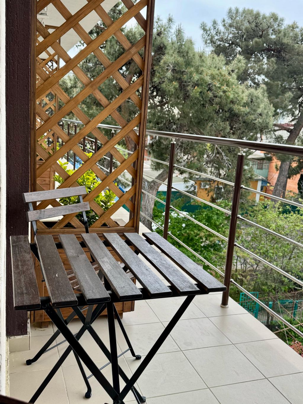 Balcony is equipped by the furniture (a table and 2 chairs). Balcony is shared.